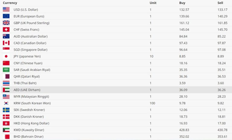 यस्तै आज अमेरिकी डलरको खरिद दर १३२.५७ रुपैयाँ र बिक्री दर १३३.१७ रुपैयाँ रहेको छ । युरो एकको खरिद दर १३९.६६ रुपैयाँ र बिक्री दर १४०.२९ रुपैयाँ रहेको छ ।