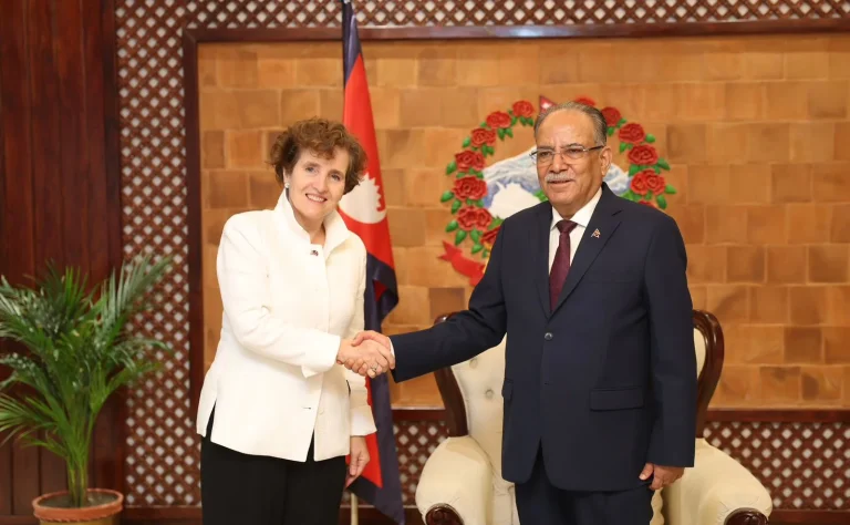 प्रधानमन्त्री प्रचण्ड र एमसीसीकी सीईओ अल्ब्राइटबीच बालुवाटारमा भेटवार्ता