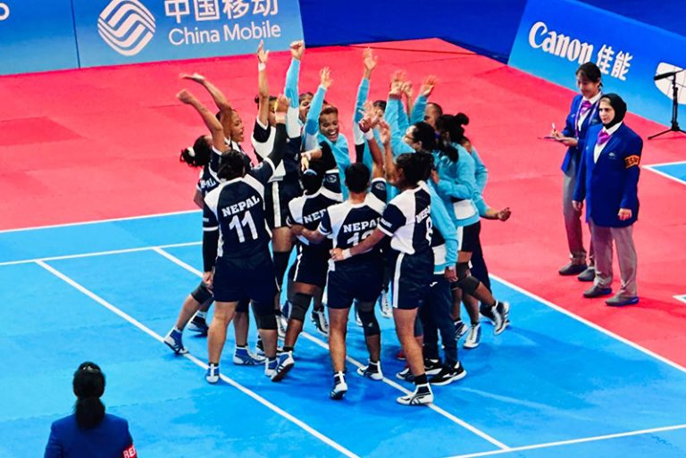 नेपालले महिला कबड्डीमा सोमबार बिहान भएको खेलमा बंगालदेशलाई ३७-२४ ले पराजित गर्दै पदक सम्भावना बलियो बनाएको थियो। एसियाली खेलकुदको महिला कबड्डीमा सात टिम मात्र सहभागिता रहँदा नेपालले एक खेल जितेर नै पदक पाउने सम्भावना बढाएको थियो। जसको सुनिश्चितता इरानले बंगलादेशलाई हराएसँगै भएको हो।