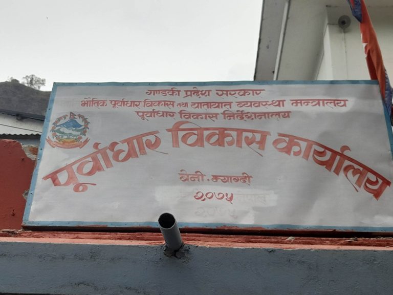 म्याग्दी, १७ असोज । एघार जना प्राविधिक जनशक्तिको दरबन्दी रहेको पूर्वाधार विकास कार्यालय म्याग्दीमा गतसाउन महिनादेखि दुई इन्जिनियर र दुई जना सबइन्जिनियर मात्र कार्यरत छन् ।