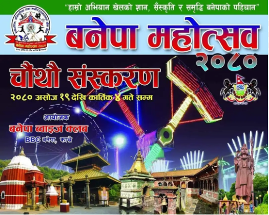 काभ्रेपलाञ्चोक, १९ असोज । काभ्रेपलाञ्चोकमा व्यापारिक, सांस्कृतिक तथा मनोरञ्जनात्मक खेल मेला बनेपा महोत्सव-२०८०’ चौथो संस्करणको आजदेखि सुरुआत भएको छ । दसैँको पूर्वसन्ध्यामा बनेपा ब्वाइज क्लबद्वारा आयोजित मेला–महोत्सव बनेपास्थित उग्रेश्वर मन्दिर परिसरमा कात्तिक ४ गतेसम्म सञ्चालन हुने छ ।