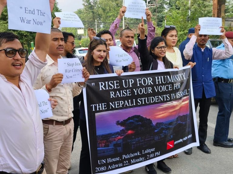 इजरायलमा प्यालेस्टाइनी बिद्रोही समूह हमासले गरेको आक्रमणमा परेका नेपाली विद्यार्थीहरुलाइ तत्काल उद्दार तथा बाच्न पाउने अधिकारको ग्यारेन्टीको माग राख्दै नेपाल स्थित संयुक्त राष्ट्रसंघको कार्यलयमा अनेरास्ववियुले धर्ना दिएका हो ।