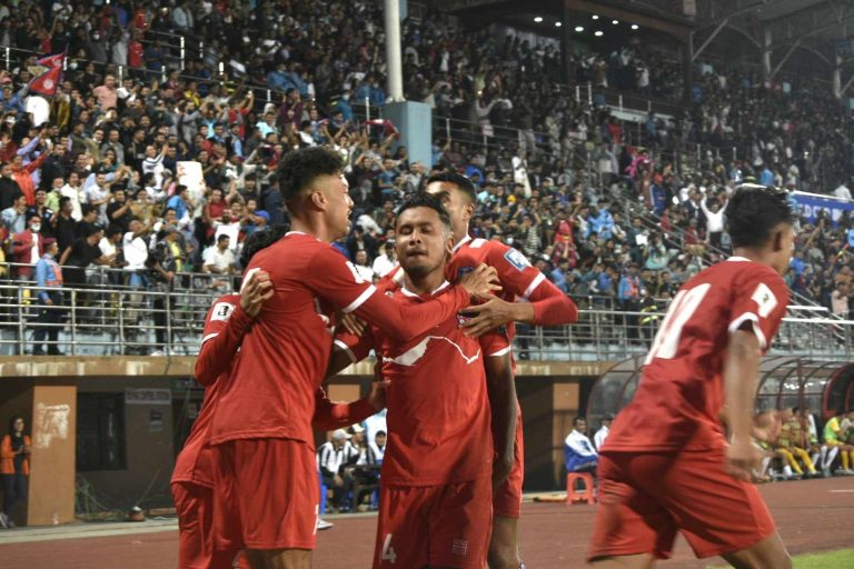 काठमाडौं, २५ असोज । विश्वकप छनोट फुटबलमा नेपाल र लाओसको खेल जारी छ । अहिले दुवै देश एक एक गोलको बराबरी छ ।काठमाडौंको त्रिपुरेश्वरस्थित दथरथ रंगशलामा जारी खेलको पहिलो हाफमा लाओसले घरेलु टोली नेपालविरुद्ध अग्रता लिएको थियो ।