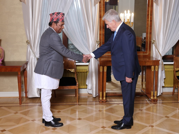 काठमाडौँ, २६ असोज । फिनल्याण्डका लागि नेपालका गैरआवासीय राजदूत प्रा.डा. रामस्वार्थ रायले फिनल्याण्डका राष्ट्रपतिसमक्ष आफ्नो ओहोदाको प्रमाणपत्र प्रस्तुत गरेका छन् ।