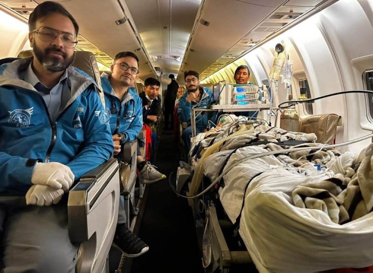 राति १ बजे ह्याम्सको विशेषज्ञ टोलीले मुम्बई एअरपोर्टमा बर्न सेन्टरको मेडिकल टिमलाई बिरामी हस्तान्तरण गरी बिहान ४ बजेर २० मिनेटमा नेपाल फर्केकोछ । शनिबार बिहान सोलुखुम्बुको लुक्लाबाट लोबुचे उडेको हेलिकप्टर दुर्घटनामा गम्भीर घाइते भएका उनको मुखको भाग, हातखुट्टा लगायत ४५ देखि ५० प्रतिशत शरीर जलेको अस्पतालको विज्ञप्तिमा उल्लेख छ । साथै उनको फोक्सो, मेरुदण्डको हड्डी तथा किड्नीमा पनि समस्या रहेको अस्पतालले जानकारी दिएको छ ।