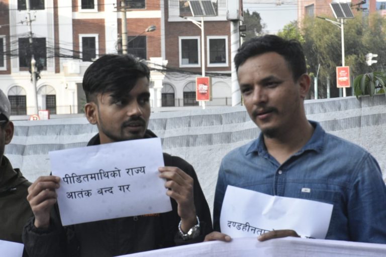 काठमाडौं,२८ असोज । गत जेठ ७ गते आफ्नै घरमा सलको पासो लागेको अवस्थामा मृत भेटिएको जनकपुरकी आरती साहलाई न्याय दिन मागगर्दै परिवारजन र नागरिक अधिकारकर्मीले माईतीघर मण्डलामा धर्ना दिएका छन् ।आइतबार आरतीको परिवारका साथै विभिन्न क्षेत्रमा रहेर वकालत गरिरहेका अधिकारकर्मीहरुले आरतीलाई न्याय माग्दै धर्ना दिएका हुन् ।