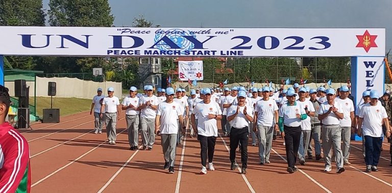 काठमाडौं, १ कात्तिक । नेपाली सेनाले संयुक्त राष्ट्रसङ्घ स्थापना दिवस (युएन डे) का अवसरमा पाँच किमी दूरीको ‘शान्ति पदयात्रा’ गरेको छ ।