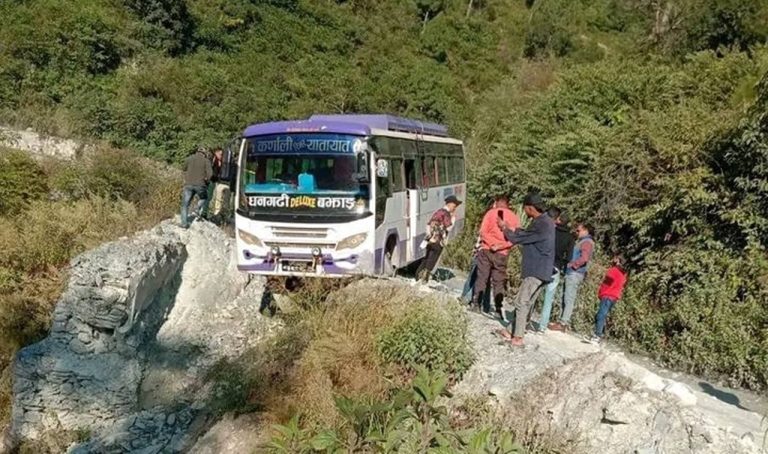 काठमाडौं, कार्तिक ३ । धनगढीबाट बझाङ जादै गरेको कर्णाली रिभर यातायातको १९८३ नम्बरको बस आज विहान ठूलो दुर्घटनाबाट जोगिएको छ । बझाङको जयपृथ्वी नगरपालिका ७ सुबेडा खड्केतोला नजिकै बस स्लिप खाएर भिरमा अड्केको हो ।