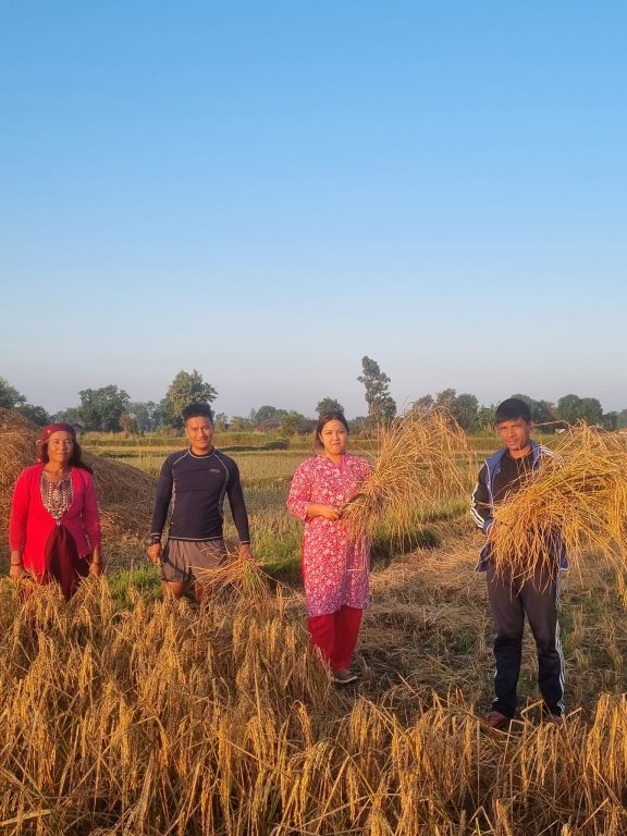 विप्लवका छोरा–बुहारी दसैंमा धान काट्न व्यस्त