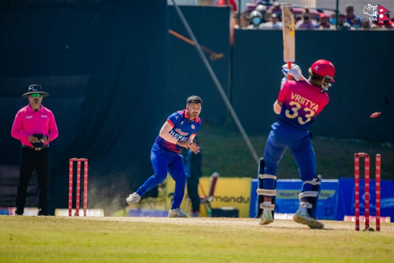 काठमाडौं,१० कार्तिक । नेपालमा जारी त्रिकोणात्मक टी-२० सिरिजको उपाधिका लापिग आज नेपाल र यूएईबीच प्रतिस्पर्धा हुँदैछ । बिहान ११ बजे त्रिवि क्रिकेट मैदानमा उपाधि भिडन्त हुन लागेको हो ।