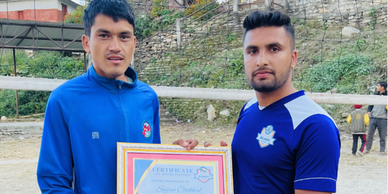 म्याग्दी, १३ कात्तिक । राष्ट्रिय भलिबल खेलाडी सुजन चोखाललाई अमेरिकाको क्लबले २५ हजार नगद पुरस्कारसहित सम्मान गरेको छ । बेनी नगरपालिका–९ घतानका चोखाल गण्डकी प्रदेशको भलिबल टिमबाट राष्ट्रिय प्रतियोगितामा सहभागी खेलाडी हुन् । अमेरिकाको बाल्टीमोर राज्यमा रहेको बेलमोन्ट भलिबल क्लबले चोखाललाई पुरस्कृत र सम्मानित गरेको हो ।