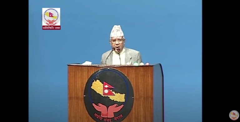 काठमाडौं, १६ कार्तिक । सत्तारूढ नेकपा (एकीकृत समाजवादी) का अध्यक्ष तथा पूर्व प्रधानमन्त्री माधवकुमार नेपालले नेपाललाई अँध्यारो युगमा फर्काउने कोसिस नगर्न पूर्वराजा ज्ञानेन्द्र शाहलाई चेतावनी दिएका छन् । आज (बिहीबार) बसेको प्रतिनिधिसभाको बैठकमा बोल्दै अध्यक्ष नेपालले यस्तो चेतावनी दिएका हुन् । उनले भने,‘समस्या देश सञ्चालन गर्ने प्रधानमन्त्रीमा हो कि राष्ट्रपतिमा हो ? यो देशमा मधेसीको एउटा छोरो राष्ट्रपति भएकोमा पीडा भइरहेको छ ? कि एकजना नेपालकी छोरी राष्ट्रपति भएकोमा पीडा भइरहेको छ ? ।’