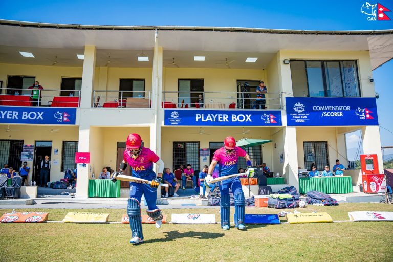मूलपानी मैदानमा जारी खेलमा यूएईले ४ ओभरमा लगातार २ विकेट गुमाएको हो । ४ ओभरको पहलिो बलमा सोमपाल कामीको बलमा खालिद शाहलाई रन आउट गरेका सोमपाल कामीले त्यहि अोभरको चौथो बलमा मोहम्मद वसिम कप्तानलाई आउट गरेका हुन् । उनी आक्रामक रुपमा ब्याटिङ गरिरहेका थिए ।