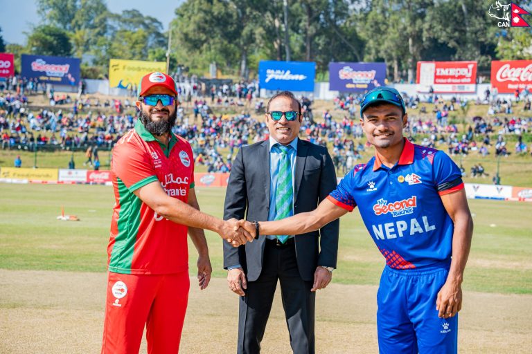ओमानवरुद्ध नेपालले टस जिेतर ब्याटिङ गर्ने निर्णय लिएको छ । भने नेपाल क्रिकेट संघ क्यानले आजको खेलमा टिकट बिक्रीबाट उठेको कूल रकमको ५० प्रतिशतर भूकम्प पीडितको लागि उपलब्ध गराउने घोषणा गरेको छ ।