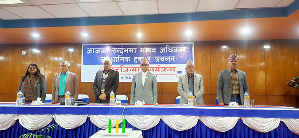 राष्ट्रिय मानव अधिकार आयोगका सदस्य डा. सूर्य ढुङ्गेलले मानव अधिकार आयोग ‘क’ ग्रेडमा कायम हुनुमा सबैको भूमिका रहेको र मानव अधिकार संरक्षकसम्बन्धी ऐन पनि जरुरी भएको बताए ।