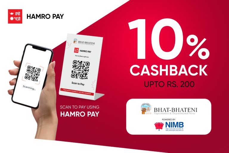 यससँगै हाम्रो पेले विशेष अफरसमेत ल्याएको छ । जसअनुसार हाम्रो पेबाट भाटभटेनीमा भुक्तानी गर्दा १० प्रतिशत क्याशब्याक पाउन सकिनेछ ।