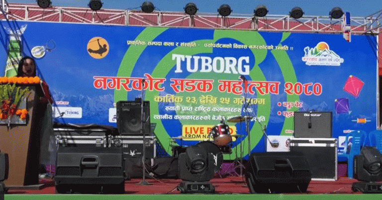 नगरकोट नाल्दुम पर्यटन विकास समितिले नगरकोटमा आयोजना गरेको तीन दिने नगरकोट सडक महोत्सवको अन्तिम दिन शनिबार राति ८ बजे देखिएको यो दृश्यले तिहारको आगमनमा रौनकता थपेको मात्रै होइन, नगरकोटमा बाह्य तथा आन्तरिक पर्यटकको चापसमेत निकै बढाएको थियो ।