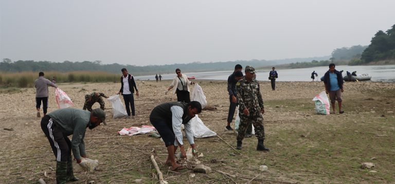 चितवन, कार्तिक २७ । चितवन राष्ट्रिय निकुञ्ज भएर बग्ने राप्ती नदी किनारमा प्लाष्टिकजन्य फोहोर बढेपछि सरसफाइ गरिएको छ। राप्ती नदी सरसफाइ अभियानले भरतपुर महानगरपालिका–२२ स्थित पटिहानीबाट गोलाघाटसम्मको नदी किनार क्षेत्रमा सरसफाइ गरेको हो।