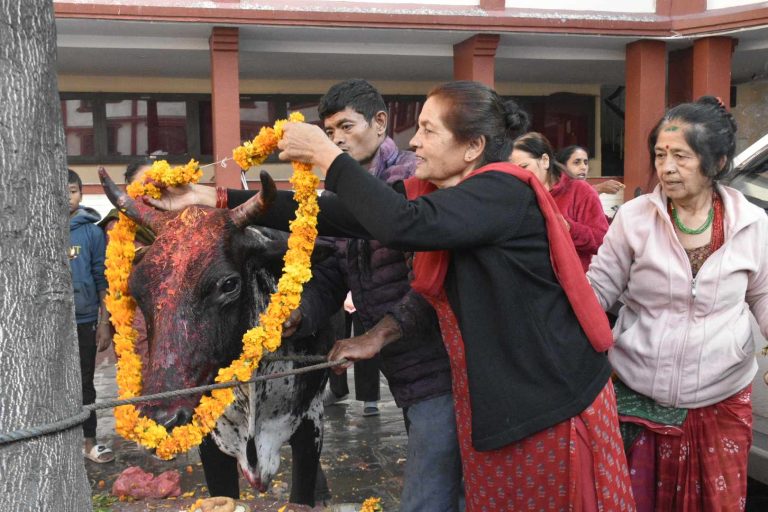काठमाडौं, कार्तिक २७ । कार्तिक शुक्ल प्रतिपदा एवं यमपञ्चक अर्थात् तिहारको तेस्रो दिन आज गाईको पूजाआजा गरी मनाइँदैछ । राजधानीको गौशालामा पनि आज विहानैदेखि गाईलाई लक्ष्मीको प्रतीक र गौमाताको रुपमा पूजा भइरहेको छ ।