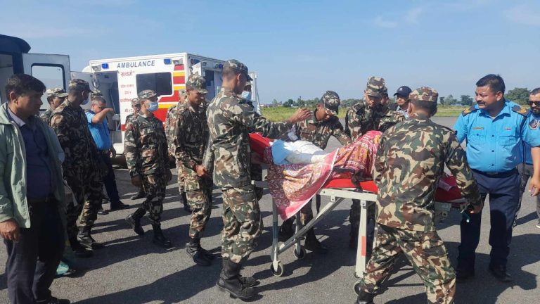 काठमाडौँ, २८ कात्तिक । नेपाली सेनाले १० जना जलनका विरामीको हवाई उद्धार गरेको छ । गत कात्तिक २६ गते मोरङको उर्लाबारी–७ बरगाछीस्थित दीपक कार्कीको घरमा आगलागी हुँदा निभाउन गएका चार जना प्रहरी र २३ जना सर्वसाधारणसमेत २७ जनामध्ये तत्काल झापाका अस्पताल लगिएका १० जनालाई आज नेपाली सेनाको विमानद्वारा चन्द्रगढीबाट काठमाडौँ ल्याइएको हो ।