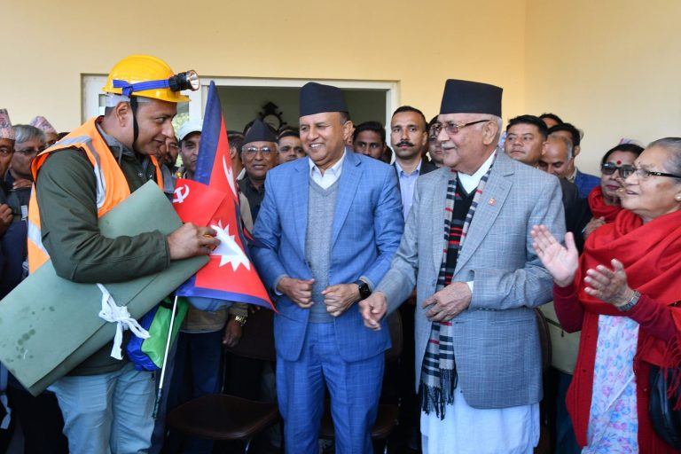 अध्यक्ष ओलीले स्वयंसेवक टोलीलाई राष्ट्रिय झण्डाका साथै बन्दोवस्तीका सामानहरू ज्याकेट, हेल्मेट, अस्थायी घरटहरा निर्माणका लागि आवश्यक औजार लगायत सामग्री प्रदान गरी टोलीलाई विदाई गरेका थिए।