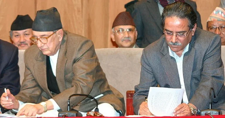 नेपाल सरकारका तर्फबाट तत्कालीन प्रधानमन्त्री गिरिजाप्रसाद कोइराला र माओवादीका तर्फबाट अध्यक्ष पुष्पकमल दाहाल ‘प्रचण्ड’बीच विसं २०६३ मङ्सिर ५ गते विस्तृत शान्ति सम्झौतामा हस्ताक्षर गर्दै दसवर्षे सशस्त्र सङ्घर्ष अन्त्य भएको घोषणा गरिएको थियो ।