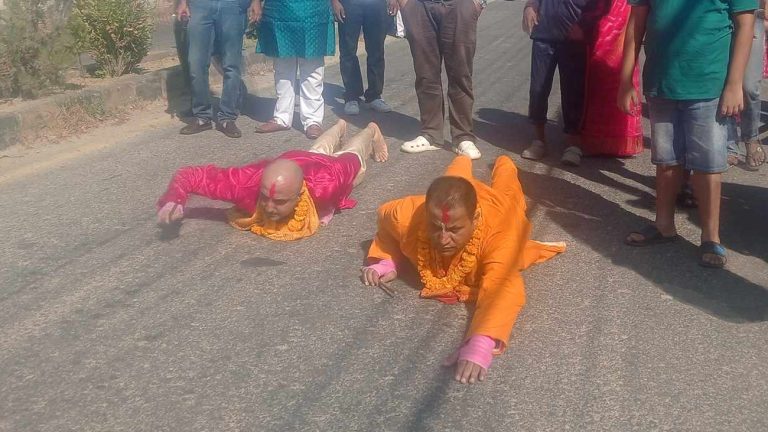 काठमाडौं,३ मंसिर । नेपाली कांग्रेसका केन्द्रीय सदस्य, विराटनगर महानगरपालिकाका पूर्व मेयर तथा कोशी प्रदेशसभा सदस्य भीम पराजुलीले छठ पूजाका लागि सिंघिया घाटसम्म सडकमा घस्रेर यात्रा गरेका छन् ।