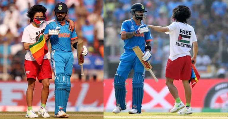 हातमा झन्डा समेत लिएर खेल चलिरहेका बेला मैदानमा छिरेका ती दर्शक भारतीय ब्याटर विराट कोहलीको नजिक पुगेका थिए । मैदान प्रवेश गरेको केही क्षणमा सुरक्षाकर्मीले उनलाई समातेका थिए र मैदान बाहिर निकालेका थिए ।