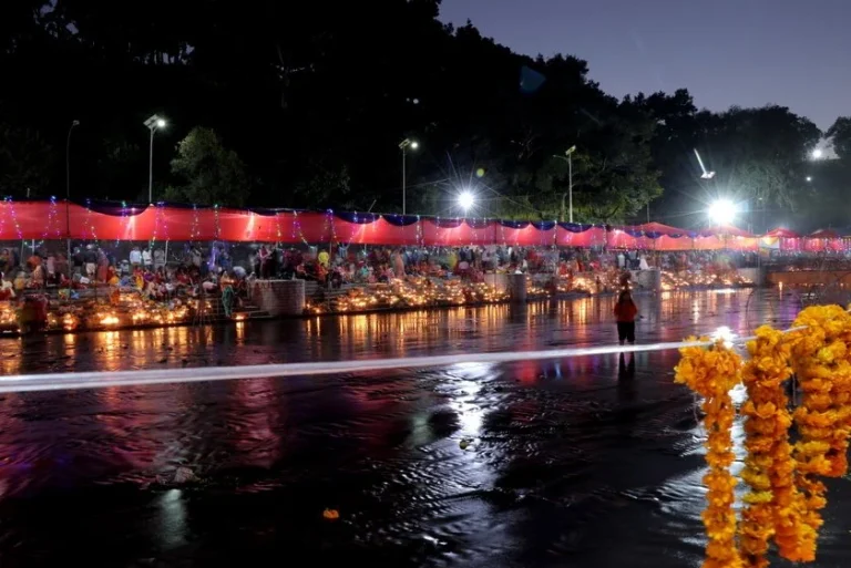काठमाडौँ । ललितपुरको कुपण्डोलस्थित बागमती किनारमा पूजाअर्जना गरी भव्यरूपमा छठपर्व मनाइएको छ । नदी किनारमा छठ पूजाका लागि झिलीमिली बत्ती सजावट गरिएको छ ।