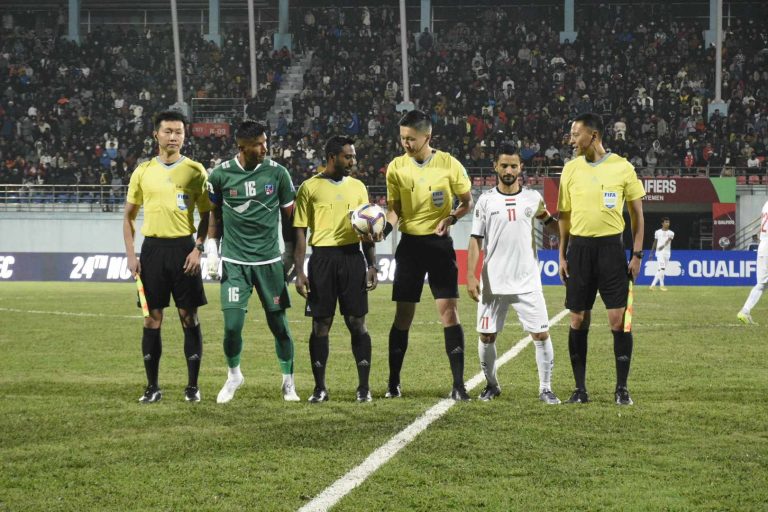 काठमाडौँ, ५ मङ्सिर : फिफा विश्वकप छनोटअन्तर्गत दोस्रो चरणको आफ्नो दोस्रो खेलमा नेपाल यमनसँग पराजित भएको छ । त्रिपुरेश्वरस्थित दशरथ रङ्गशालामा समूह ‘ए’ अन्तर्गत आज भएको खेलमा नेपाल यमनसँग ०–२ गोलअन्तरले पराजित भएको हो ।