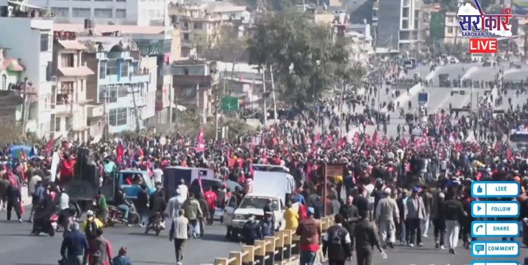 काठमाडौं, ७ मंसिर । राष्ट्र, राष्ट्रियता, धर्म, संस्कृति र नागरिक बचाउ महाअभियानका अध्यक्ष दुर्गा प्रसाईँले आयोजना गरेको प्रदर्शन सुरु भएको छ । प्रदर्शनमा ठूलो संख्यामा उपस्थिति रहेको छ । सम्भावित सुरक्षा संवेदनशीलताको ख्याल गर्दै ठूलो संख्यामा सुरक्षाकर्मीहरुको उपस्थिति रहेको छ ।