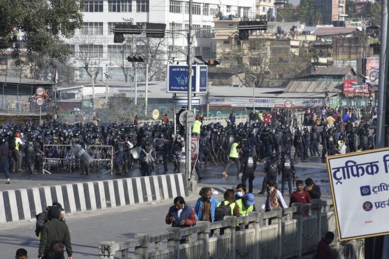 काठमाडौं,७ मंसिर । राष्ट्र, राष्ट्रियता, धर्म, संस्कृति र नागरिक बचाउ महाअभियानको आह्वानमा भएको आन्दोलनमा तेस्रोपटक झडप भएको छ ।