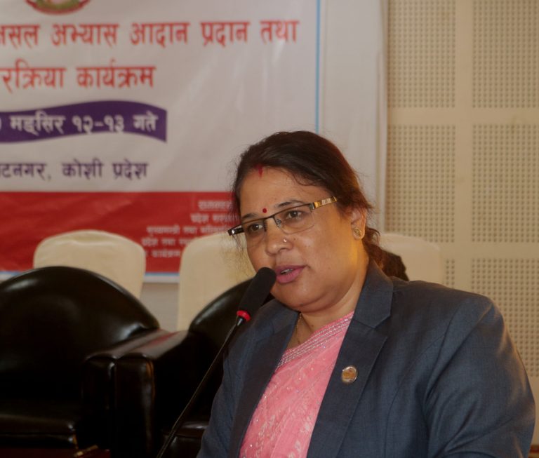 सामान्य प्रशासन मन्त्रालय र कोशी प्रदेश मुख्यमन्त्री एवं मन्त्रिपरिषद्को कार्यालयद्वारा आज आयोजित ‘स्थानीय तहहरुको असल अभ्यास’ कार्यक्रममा सामान्य प्रशासनमन्त्रीले जनताका विकासका चाहना पूरा गर्न ठोस योजना बनाएर काम गर्नुपर्नेमा जोड दिइन् । उनले स्थानीय तहलाई नमूनाका रुपमा विकास गर्नुपर्ने बताइन् ।