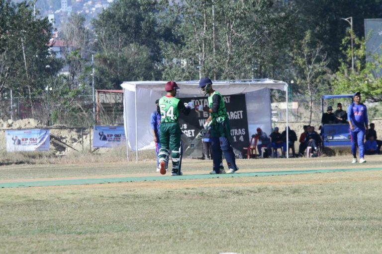 काठमाडौं,१२ मंसिर । पोखरामा जारी प्रथम केपी ओली कप टी-२० क्रिकेटमा विभागीय टिम त्रिभुवन आर्मी क्लब सेमिफाइनलमा प्रवेश गरेको छ । आर्मीले दिएको १८७ रनको विशाल लक्ष्य पछ्याएको कोशी १८.२ ओभरमा १४७ रनमा अलआउट भएपछि आर्मीले ३९ रनको जित निकाल्दै सेमिफाइनलमा स्थान पक्का गरेको हो ।