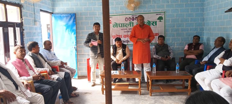 जनकपुरधाम, मंसिर १३। नेपाली कांग्रेस मधेश प्रदेश कार्य समितिको पूर्ण बैठक मंगलबार प्रादेशिक कार्यालय जनकपुरधाममा सम्पन्न भएको छ । नेपाली कांग्रेस मधेश प्रदेशको पार्टी कार्यालयमा मधेश प्रदेश सभापति एवं मधेश प्रदेश सरकारमा भौतिक पूर्वाधार विकास मन्त्री कृष्णप्रसाद यादवको अध्यक्षमा बसेको पूर्ण बैठकमा चार बुंदे निर्णय गरिएको छ ।