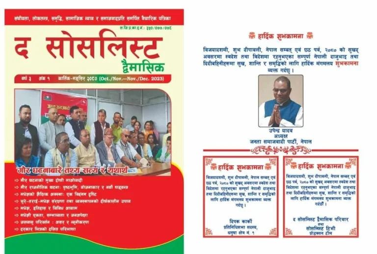 पत्रिकाको कार्तिक मंसिर अंक सार्वजनिक गरेको जसपाले पत्रिकालाई विचारप्रधान पत्रिकाको रुपमा निरन्तरता दिने भएको छ ।