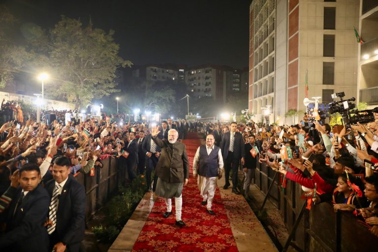 नयाँ दिल्ली पार्टी मुख्यालयमा प्रधानमन्त्री मोदी भाजपा कार्यकर्ताहरूबीच हिँड्नुभयो । सम्बोधनमा उहाँले इमानदारी, पारदर्शिता र सुशासनको जित भएको बताए । करिब एक दशक सत्तामा रहनुभएका मोदी र उहाँको पार्टी राष्ट्रियस्तरमा लोकप्रिय भएको छ । उहाँले सन् २०२४ मा लगातार तेस्रो पटक जित हासिल गर्नुहुने सर्वेक्षणहरूले देखाएका छन् ।