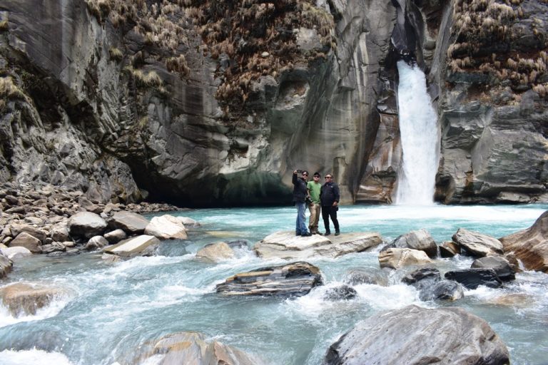 म्याग्दी, २० मङ्सिर । गत हप्ता अन्नपूर्ण हिमालको आधार शिविरको पदयात्रामा गएका पूर्व मुख्य सचिव डा सोमलाल सुवेदी करिब एक घण्टा फुतफुते झरनामा बिताए ।