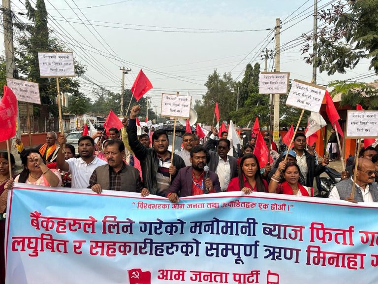 लघुवित्त र सहकारीको सम्पूर्ण ऋण मिनाहा गर्न माग गर्दै आजपाको प्रदर्शन, माग पूरा नभए मधेश बन्द गर्ने चेतावनी