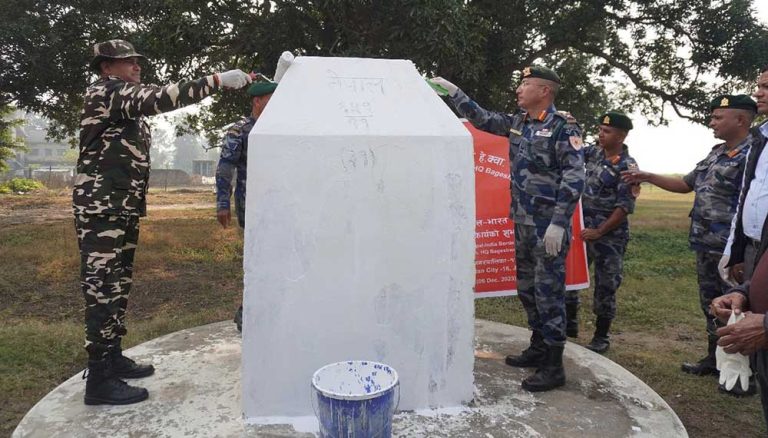 जानकी (बाँके), २१ मङ्सिर । मन्त्रिपरिषद्को निर्यणअनुसार बाँकेको जमुनाहस्थित नेपाल–भारत सीमा क्षेत्रमा रहेका सीमास्तम्भको मर्मतसम्भार र पुनःस्थापना थालिएको छ । बुधबार नेपालगञ्ज उपमहानगरपालिका–१६ जमुनाहस्थित नेपाल– भारत सीमा क्षेत्रका ६५१, ११ ९३१० नम्बरको सीमास्तम्भमा रङरोगन गरिएको छ ।