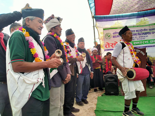 वालिङ (स्याङ्जा), २५ मङ्सिर । गाउँमा रहेका वृद्धवृद्धा आफ्ना कलिला नातिनातिनासहित मञ्चमा उपस्थित भएर कार्यक्रम देखाए । उनीहरू आएका पाहुनालाई गुरुङ समुदायमा प्रचलित पोशाकमा विभिन्न सांस्कृतिक नाच प्रस्तुत गर्छन् । वैदेशिक रोजगारी वा सहर झर्ने प्रचलनलाई पाखा लगाउँदै नाति नातिनालाई साथमै लिएर सांस्कृतिक कार्यक्रममार्फत पाहुनालाई मनोरञ्जन प्रदान गर्नु यहाँको विशेषता हो ।