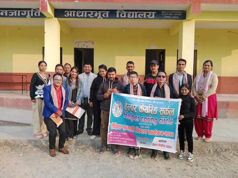 काठमाडौं, २९ मंसिर । हेल्पर केयरिङ सर्कलको आयोजनमा शैक्षिक सामाग्री वितरण कार्यक्रम सम्पन्न भएको छ । यस संस्थाको सल्लाहकार गणेश पौडेलको प्रमुख अतिथ्यमा बिस्वास घिमिरेको अध्यक्षतामा सम्पन्न कार्यक्रम बुटवल ११ ,न्यु दुर्गानगरमा श्री मायादेवी जनजागृति आधारभूत विद्यालयमा कार्यक्रम सम्पन्न गरिएको छ ।