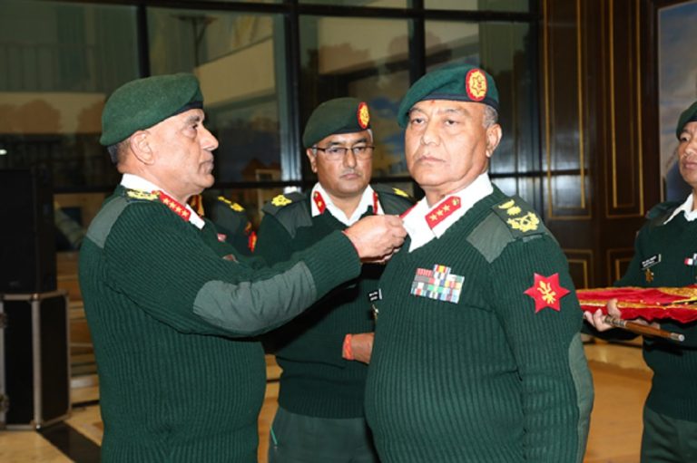 काठमाडौँ, २९ मङ्सिर । प्रधानसेनापति प्रभुराम शर्माले रथी दर्जामा बढुवा भएका उपरथी अशोकराज सिग्देललाई आज रथी दर्जाको दर्ज्यानी चिह्न प्रदान गरेका छन् । मन्त्रिपरिषद्को बिहीबारको बैठकले उहाँलाई उक्त पदमा बढुवा गर्ने निर्णय गरेको थियो ।