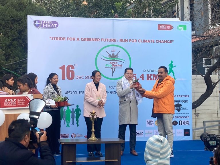 ‘काठमाडौंलाई सुन्दर, हराभरा र हरियाली सहर बनाउने एपेक्स कलेजको अभियान अब सफल हुनेछ । हामी आजबाट एउटा अभियान सुरु गर्दैछौं । यो अभियानले जलवायु परिवर्तनले विश्वमा पारेको असरका बारेमा जसरी अहिले छलफल भइरहेको छ, अब नेपालमा एपेक्स कलेजबाट सुरुवात भयो,’– धमलाले भने ।