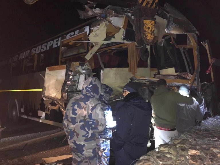 झापाको काँकडभिट्टाबाट काठमाडौं आउँदै गरेको बा ३(००१ ख २५८७ नम्बरको बस र हेटौँडाबाट पथलैयातर्फ जाँदै गरेको ना ७ ख ७३०० नम्बरको ट्रक आज बिहान पुलमा जुधेका थिए ।