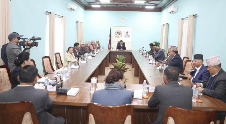 कञ्चनपुर, पुस ४ । सिंहदरबारको नयाँ बैठक कक्षमा मन्त्रिपरिषद् बैठक सुरु भएको छ । आज बसेको नियमित बैठक भूकम्पले क्षतिग्रस्त भवनलाई रेट्रो फिटिङ गरी पुनर्निर्माण गरिएको भवनको नयाँ बैठक कक्ष बसेको हो ।