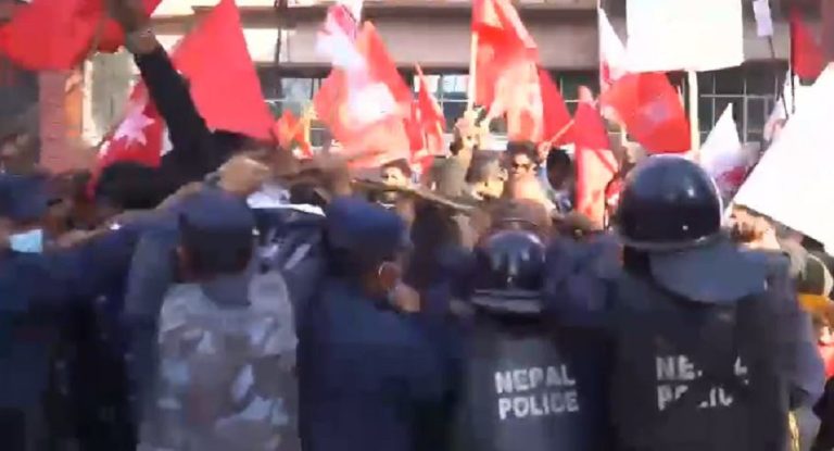 प्रहरीले लाठीचार्ज गरेपछि प्रदर्शनकारीहरुले प्रहरी दमनको विरुद्धमा नाराबाजी गरेका थिए ।