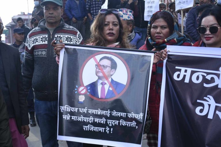 काठमाडौं, ९ पुस । संस्कृति, पर्यटन तथा नागरिक उड्डयनमन्त्री सुदन किरातीलाई बर्खास्त गर्न माग गर्दै धार्मिक समुदायहरुले प्रर्दशन गरेका छन् ।