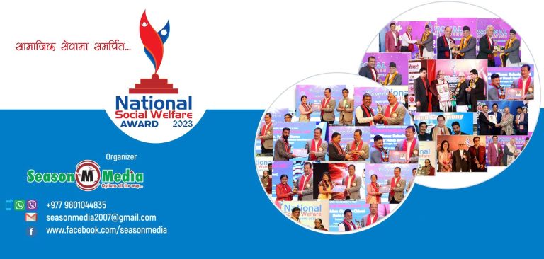 काठमाडौं, ९ पुस । लामो समयदेखि सांस्कृतिक, सामाजिक तथा मनोरञ्जनात्मक क्षेत्रमा अग्रणी संस्थाका रूपमा काम गर्दै आएको सिजन मिडियाले विगतका वर्षहरूझैं यस वर्ष पनि विभिन्न सामाजिक क्षेत्रमा क्रियाशील व्यक्तित्व र संस्थाहरूको कामको मूल्याङ्कन र उनीहरूको कामलाई अझै हौसला प्रदान गर्ने उद्धेश्यले २०८० साल माघ अन्तिम साता काठमाडौँमा ‘नेशनल सोसल वेलफेयर अवार्ड २०२३’ नामक राष्ट्रिय अवार्ड तथा समाजसेवीहरूको कामको सम्मानस्वरूप चौंथोे संस्करणको कार्यक्रम आयोजना गर्न लागेको हो ।