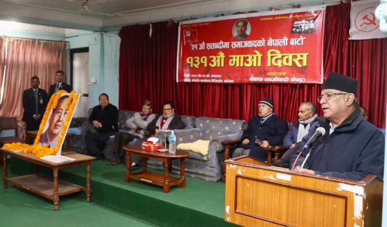 मंगलबार बिहान पार्टी केन्द्रीय कार्यालय पेरिसडाँडामा आयोजित १३१ औँ ‘माओ दिवस’का सन्दर्भमा आयोजित कार्यक्रममा बोल्दै उनले विकसित परिस्थितिको जगमा विचारको विकास गर्नुपर्ने आवश्यकता औल्याए । उनले भने, ‘‘आजको राष्ट्रिय र अन्तर्राष्ट्रिय परिस्थिति माओको जीवनकालको जस्तो छैन। माओपछि विश्व परिस्थितिमा निकै ठूलो फेरबदल आएको छ। सबैभन्दा ठूलो परिवर्तन आइटी क्षेत्रमा आएको छ। साम्राज्यवादले नयाँ नयाँ रणनीति र कार्यनीतिसहित आफूलाई टिकाइरहेको छ। हामी मार्क्सवादीहरूले ठोस परिस्थितिअनुसार आफूलाई जसरी रूपान्तरण गर्नुपर्थ्यो, त्यो गर्न सकिरहेका छैनौँ। आजको मुख्य चुनौती यही हो।’’